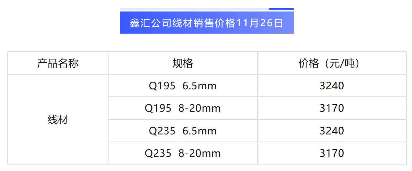 線材銷售、廢鋼采購價格丨2025年11月26日